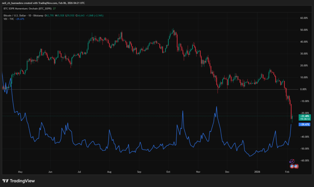 By Feb 5, the write-up argues conditions looked like capitulation. The Crypto Fear and Greed Index is cited at 9 out of 100 on Feb 5, described as the lowest since June 2022. It also points to negative funding, collapsing open interest, and large liquidations as signs leverage had been cleared, not gently unwound. Price action is used as supporting context: Bitcoin is described wicking down near near $60,000 on Feb 5 then rebounding above above $65,000. That does not prove a durable bottom, but it does fit the “forced selling then snapback” pattern.