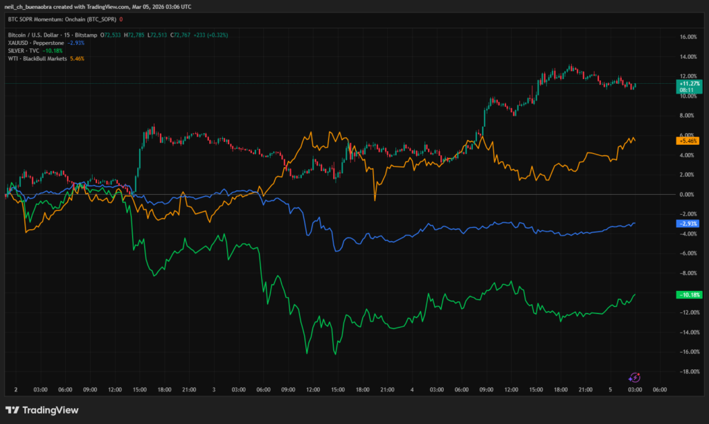 Bitcoin Performance vs Gold, Silver, and Oil