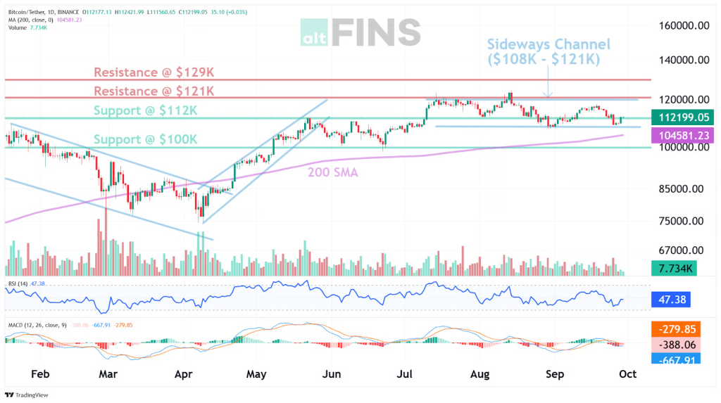 Anchoring levels for the majors framed the month. Bitcoin began September close to $111,000, traded into the mid-$110,000s around 11–18 September, and tested the $109,000 area during 24–27 September before recovering intraday into 30 September. Ether opened near $4,300 on 1 September closes, pressed toward the mid-$4,000s around 17–18 September, then slipped below $4,000 on 25 September during a concentrated deleveraging episode before rebounding around that figure into the final days. Exact month-end closing prints for 30 September may vary across venues and index methodologies; where a specific figure is required, the last widely reported closing snapshot prior to publication has been used.