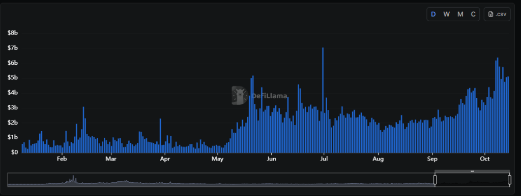 - DEX volumes in the multi-billion range with perps contributing but not dominating